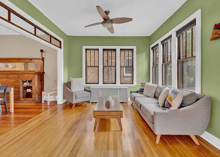 La casa de vacaciones se encuentra a una distancia de 1 km de la estación de metro Berwyn, mientras que Swedish American Museum está a tan solo 7 minutos a pie. Esta villa está situada a unos minutos a pie del Wrigley, mientras que la estación de autobuses Ashland & Balmoral está a 50 metros. La propiedad se encuentra a 10 minutos en coche de la Avenida Devon.